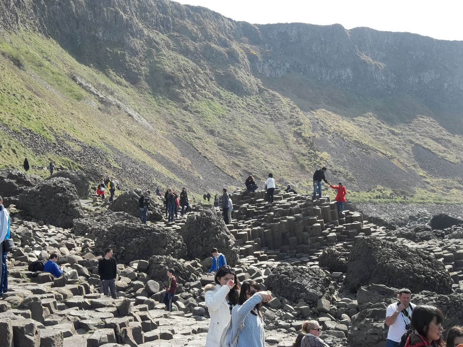 Seguindo pela costa norte da Ilha, outra atração nas terras britânicas são as “Calçadas dos Gigantes” ou “Giant’s Causeway” em inglês. Localizada a 3 km a norte da vila de Bushmills, no Condado de Antrim, a Calçada dos Gigantes é Patrimônio Mundial da Unesco. Possui cerca de 40.000 (quarenta mil) colunas prismáticas de basalto, encaixadas como se formassem uma enorme calçada de pedras gigantescas, provenientes de erupções vulcânicas ocorridas a “milhões” de anos. É um passeio às margens do Oceano Atlântico (gelado) e de muita curiosidade. Realmente, parece uma calçada e o cenário é único para fotos e vídeos.