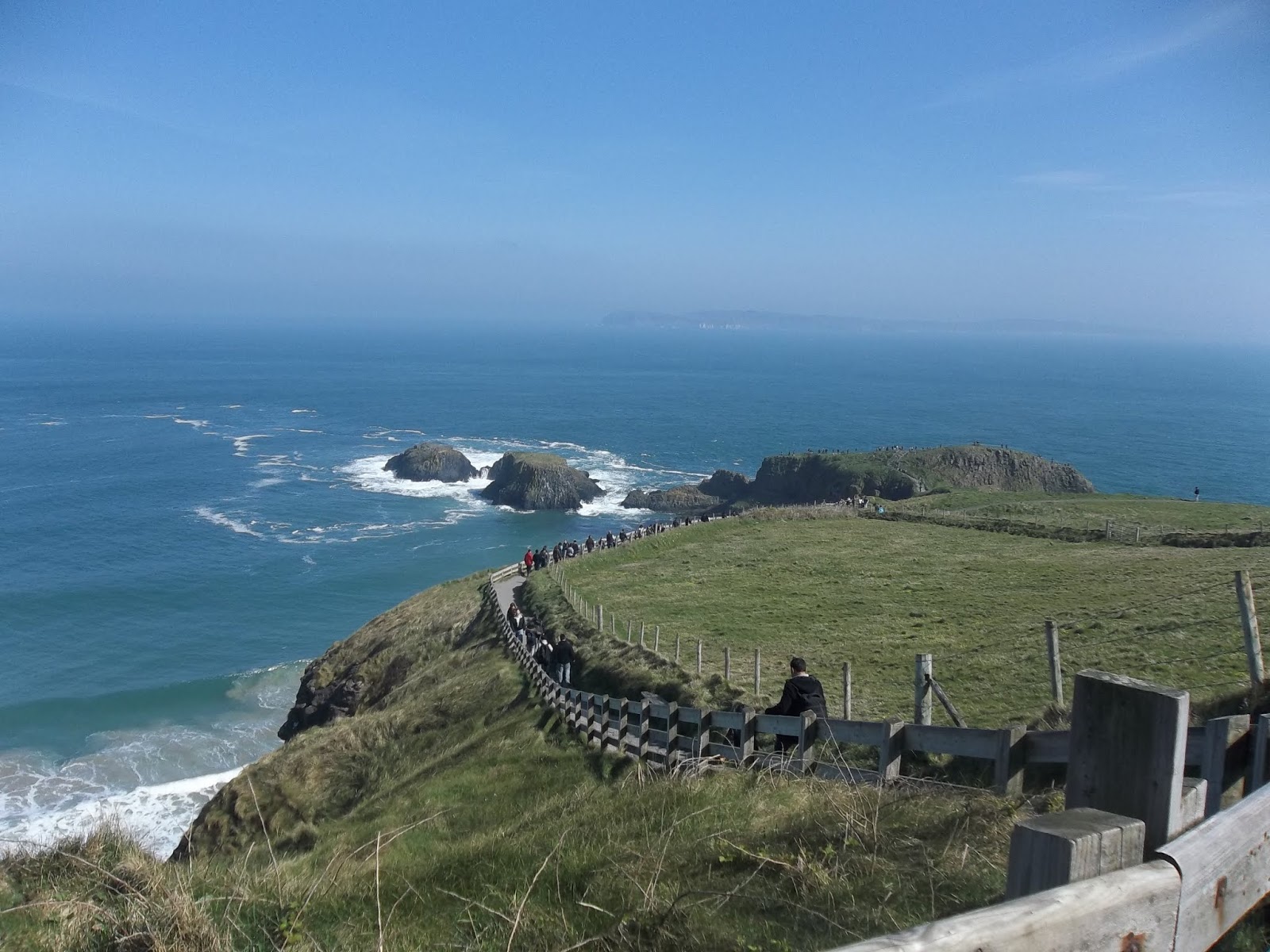 | Carrick-a-Rede e a vista Ilha Rathlin, na Escócia (ao fundo). Arquivo Blog |